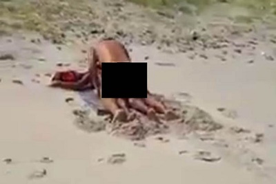 Tourists have been shocked with a rather distressing sight after driving through a beach and greeted by a sight of a couple making out in the broad day light.