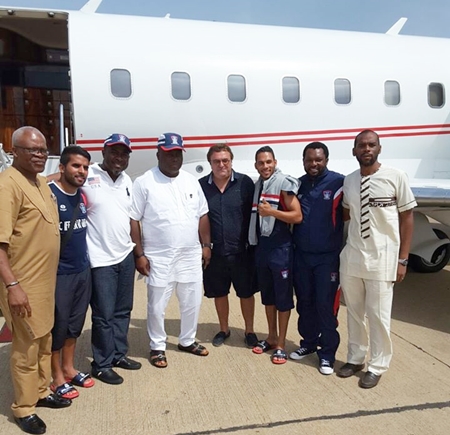 In solidarity bid to support the Super Eagles in demolishing the Pharaohs of Egypt today, billionaire oil mogul, Ifeanyi Ubah, has flown his players and management aboard a private aircraft enroute Kaduna.