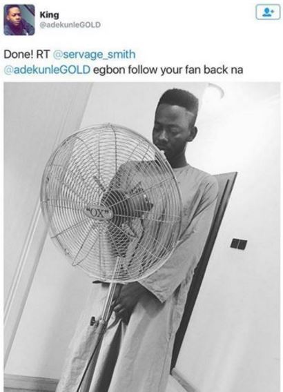 Playing along, Adekunle Gold replied the man's tweet with photo of