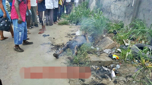 jungle justice when an angry mob set him ablaze after he was accused of